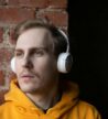 A colorful sneaker with a dynamic design, incorporating shades of green, yellow, purple, and blue. The shoe is positioned against a vivid orange background, with the blue laces prominently extending outward, creating a sense of motion.